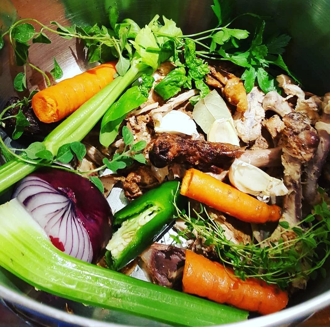 Shells from 1 lb of Shrimp/lobster/crab, or steak bones, or lamb bones, or ham bones, or chicken/turkey bones, or vegetables only